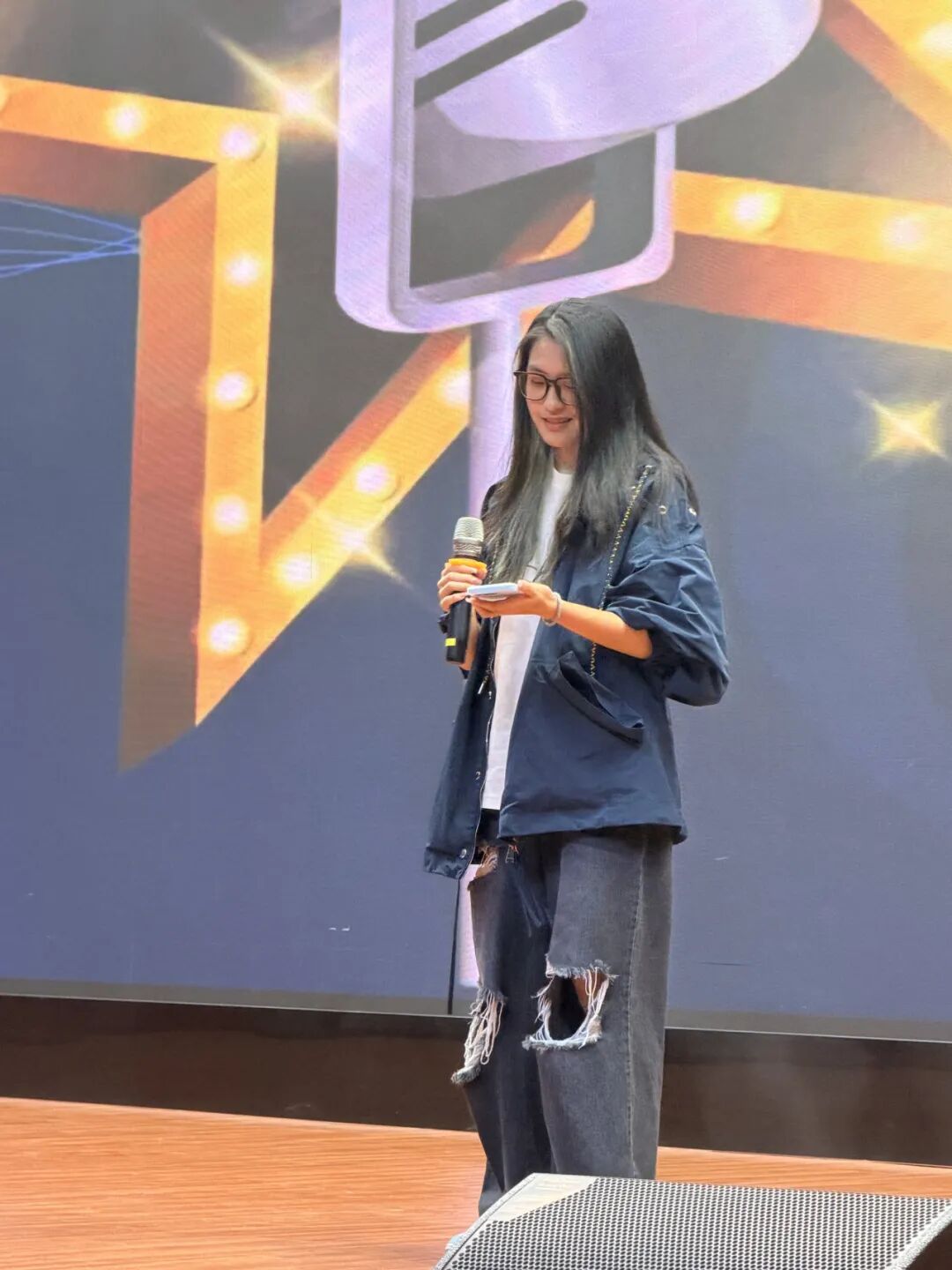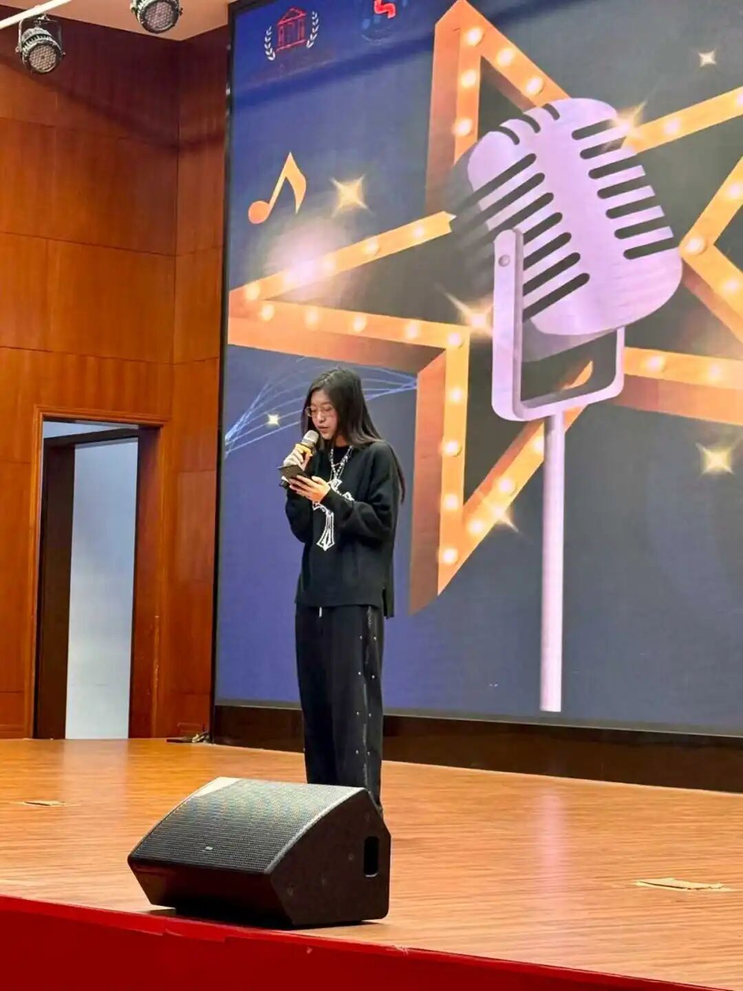舞台灯光亮起,平日里专注学业的同学们,在这一刻化身光芒四射的歌者。项语涵一曲《不为谁而作的歌》,用清澈声线将心底的热爱娓娓道来;经典曲目《前方》在郑钧的演绎下,沙哑嗓音中尽显青春的洒脱与不羁;而董佳妮带来的《我怀念的》,从激昂到温柔,一字一句仿佛在诉说青春里那些甜蜜与遗憾,轻轻叩动着每一位听众的心弦。