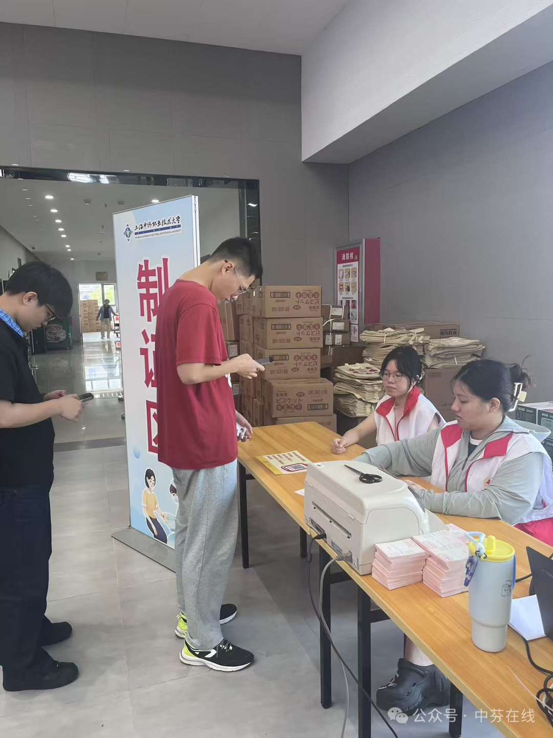 志愿者提前布置休息区,将座椅、医疗用品备好,耐心解答疑问,一句句贴心叮嘱缓解学生紧张情绪。