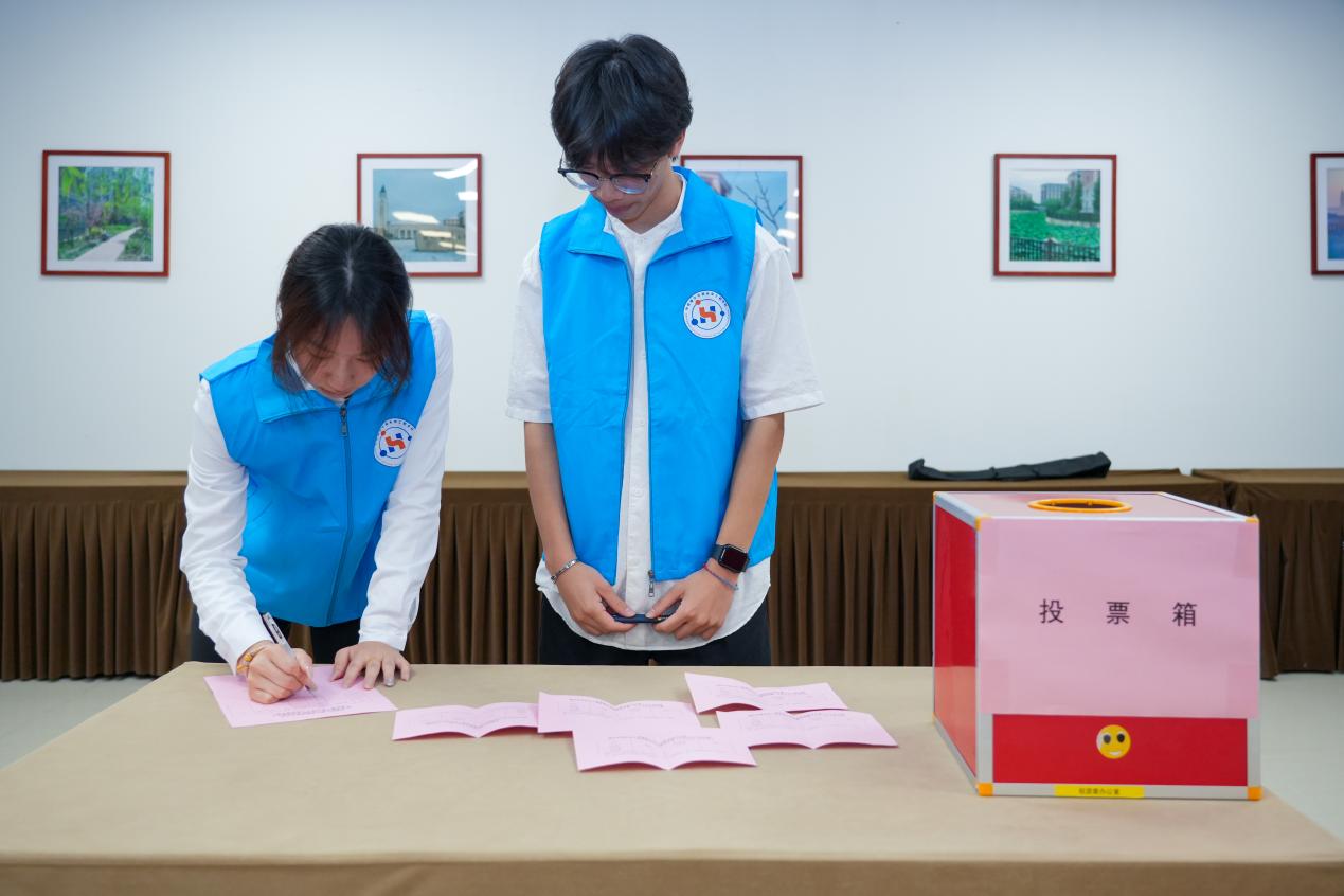在总监票人、监票人的全程监督下,大会采用等额选举与无记名投票方式,全体团员郑重投下选票。最终,伍阳阳、肖文婧、唐妤熙、王曦元、李宇鑫 5名同志当选为共青团上海中侨职业技术大学赫尔辛基未来工程学院总支部第一届委员会委员,选举过程公开透明,结果合法有效。