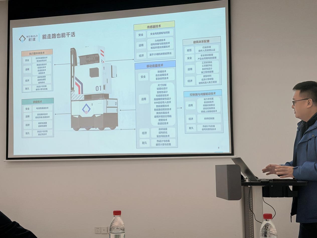 踏入蔚建科技的实验室与演示车间,智能建造的硬核实力扑面而来:建筑机器人精准砌筑、高效喷涂、自主搬运,机械臂的每一次挥舞,都是算法与工程的完美协作。工程师们与原型机器人的调试交互,让中芬青年直观感受到“迭代创新”模式的实践落地——这正是他们在课程中热议的核心思维。而通过高精度传感器与BIM模型联动的“数字孪生”技术,机器人先在虚拟空间模拟施工、再开展实体作业的场景,更让国际理论与本土实验实现无缝对接。聆听技术专家解析机器人如何提升施工质量、安全与效能,对比传统人工与机器协作的差异,中芬青年们深切体会到智能建造为行业带来的颠覆性变革。