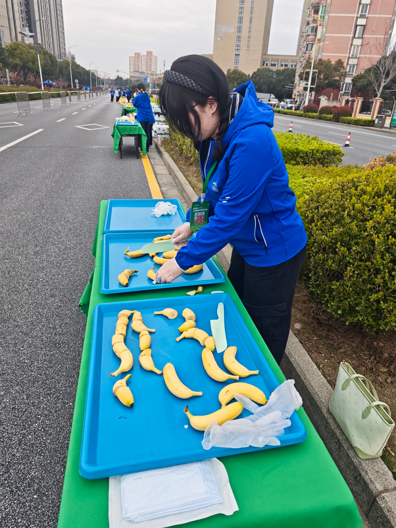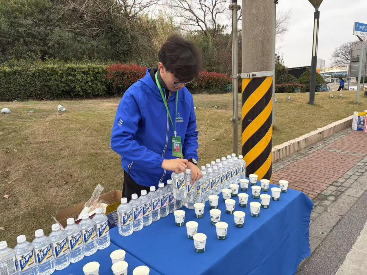 检录引导处,同学们耐心解答跑者疑问,协助完成身份核验;补给站点旁,大家高效分发饮用水、能量补给,为跑者续航冲刺;赛道沿线,他们全程值守,及时维护秩序、提供应急帮扶。