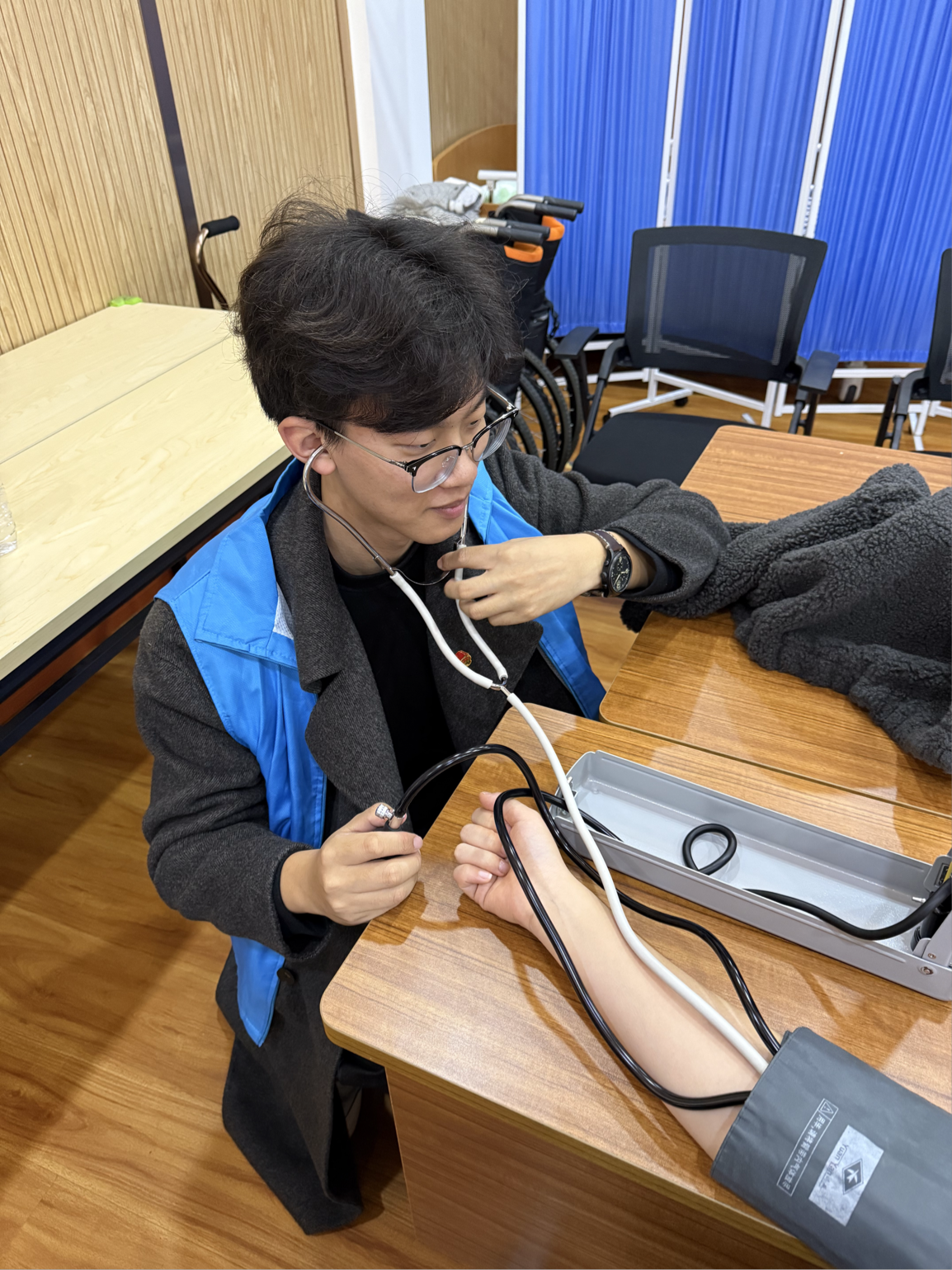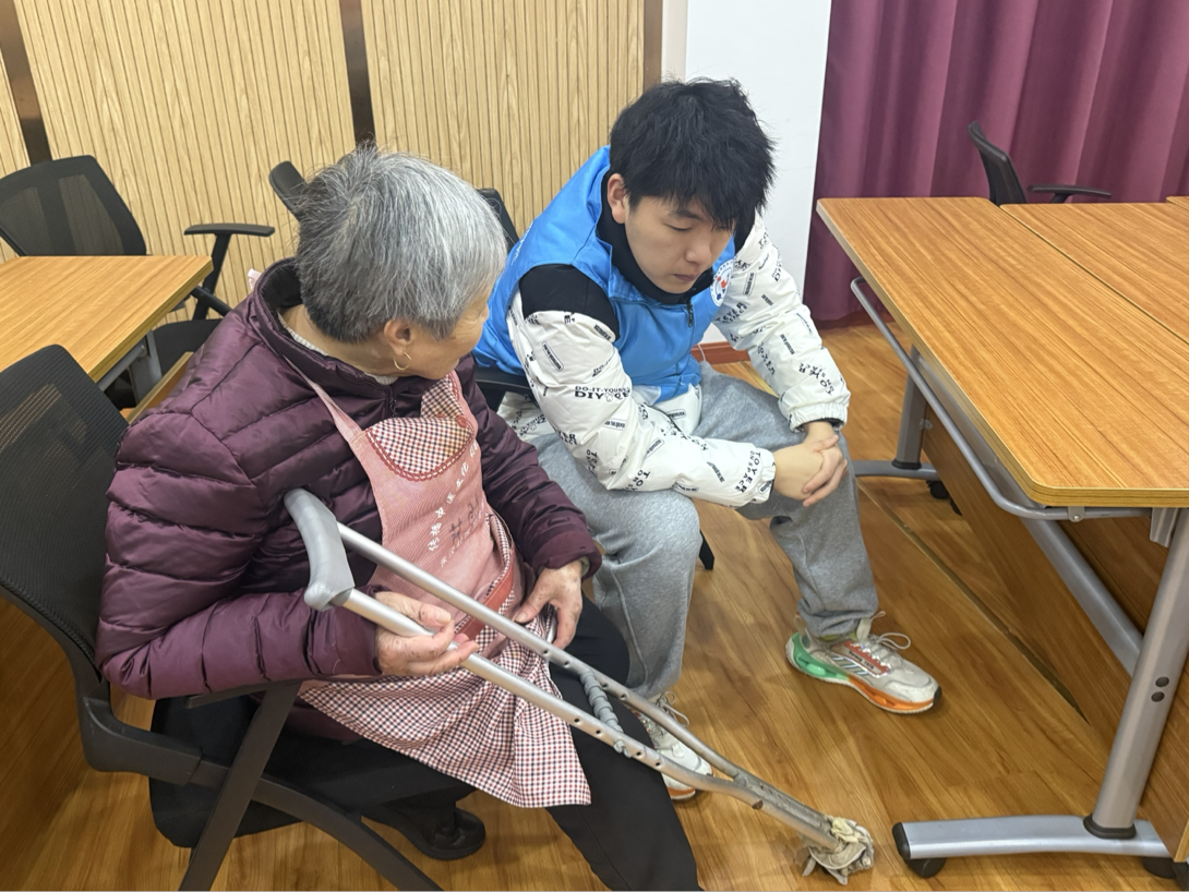 以党建为引领,依托中外合作办学跨学科、跨文化教学资源,融合护理与健康学院专业康养知识、赫尔辛基未来工程学院国际康养理念,组建“中+外”特色志愿服务小队。由护理与健康学院志愿者现场指导,中芬青年们默契配合,为老人们测量血压、记录健康数据,用中英双语简易讲解的方式,结合老年生理特点普及日常健康防护、居家安全护理知识,同时分享国外适老化康养小技巧,让专业服务更具温度与特色,以中外融合的专业能力守护老人健康,践行党建引领下的专业育人使命。